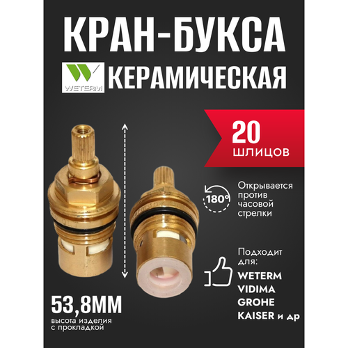 Кран-букса для смесителя керамическая 20 шлицов (2 штуки), для Vidima, Grohe, Frap, Ledeme и других