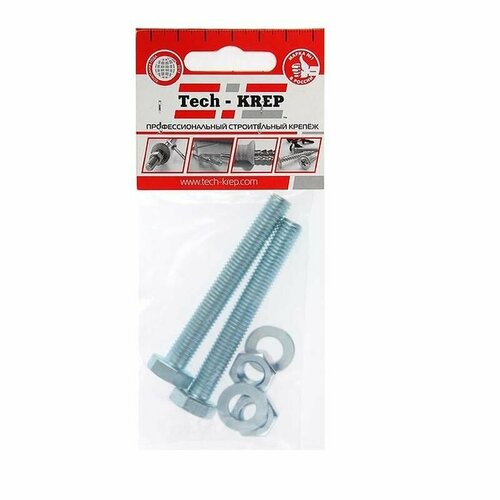 Болт DIN933 с шестигранной головкой М8х100+гайка+шайба оцинк. (уп.2шт) Tech-KREP 112725