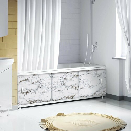 Экран под ванну пластиковый Alavann Respect 150 см ч/б мрамор, раздвижной, пластик.профиль