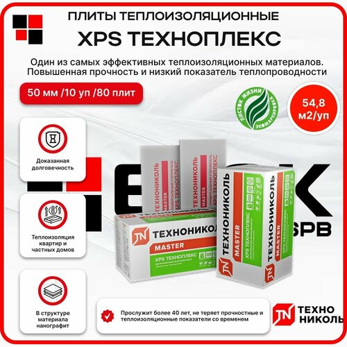 Технониколь XPS техноплекс 50 мм (10 уп /54,8м2/ 80 плит) Утеплитель из пенополистирола для фасада, стен, крыши, пола