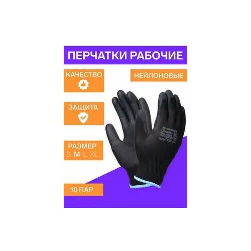 10 пар Перчатки Защитные Рабочие Fort для работы с металлом, ремонта, работы в саду, грибов, с покрытием полиуретаном, размер 8/M, арт. 2101