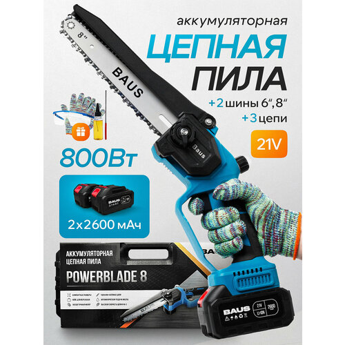 Пила аккумуляторная цепная, садовая BAUS, 800 Вт, 2 аккумулятора
