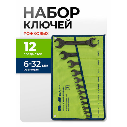 Набор ключей рожковых Сибртех 6 - 32 мм, 12 шт, CrV, фосфатированные 15234