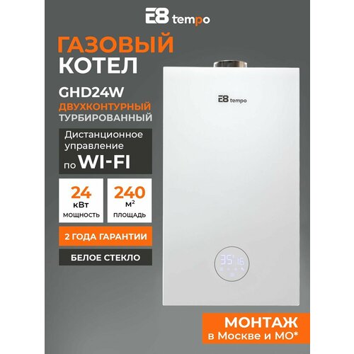 Котел газовый настенный двухконтурный турбированный 24 кВт E8 Tempo GHD24W (белое стекло)
