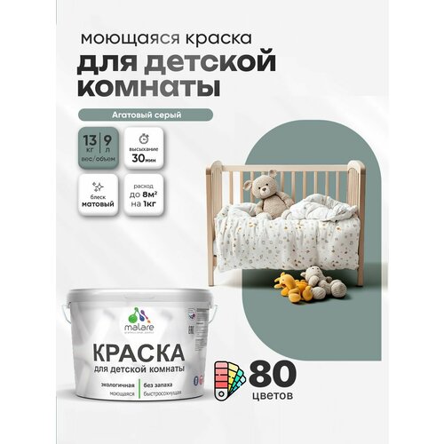 Краска акриловая (АК) Malare Краска Malare интерьерная для детской комнаты, для стен и обоев, для потолка, акриловая без запаха моющаяся матовая, агатовый (9л - 13кг) матовая агатовый 9 л 13 кг