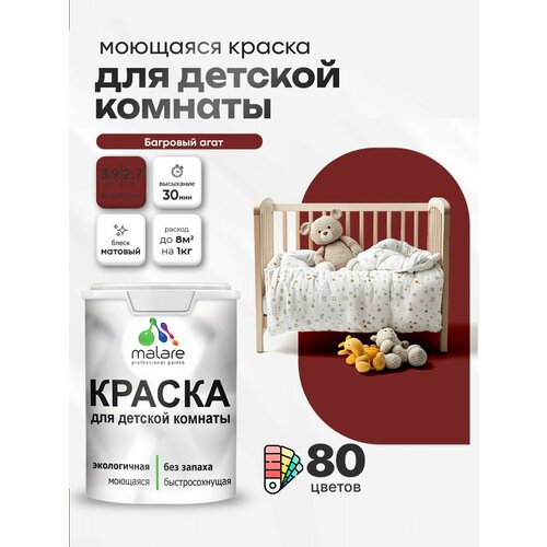 Краска акриловая (АК) Malare Краска Malare интерьерная для детской комнаты, для стен и обоев, для потолка, акриловая без запаха моющаяся матовая, агатовый (1л - 1.3кг) матовая агатовый 1 л 1.3 кг