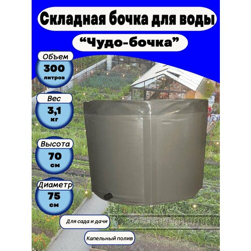 Чудо-бочка Складная емкость для воды из ПВХ 300 л с верхним каркасом и крышкой Чудо-бочка высота 70 см диаметр 74 см