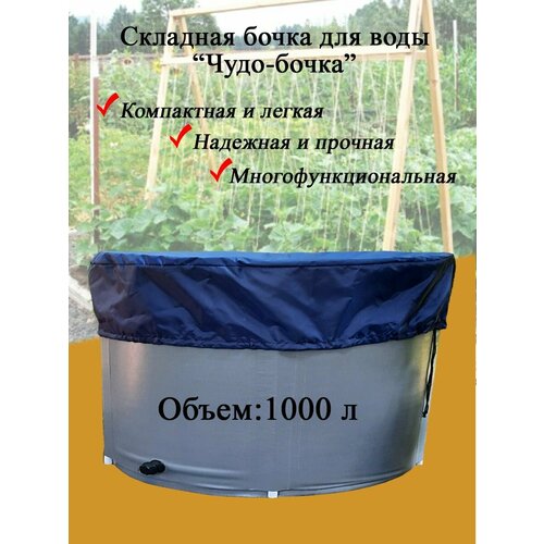 Чудо-бочка Складная емкость для воды из ПВХ 1000 л с верхним каркасом и крышкой Чудо-бочка высота 100 см диаметр 115 см