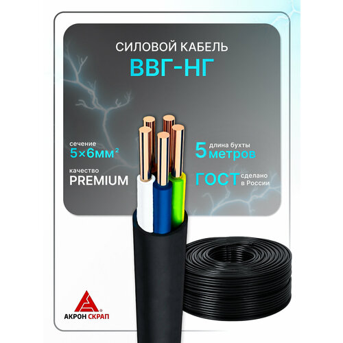 Кабель электрический ВВГнг(A)-LS 5x6 ГОСТ ок круглый 5 м
