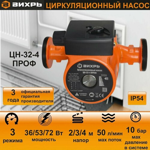 Циркуляционный насос вихрь ЦН-32-4 ПРОФ (72 Вт, напор 4м) для системы отопления, теплого пола, для дома и дачи
