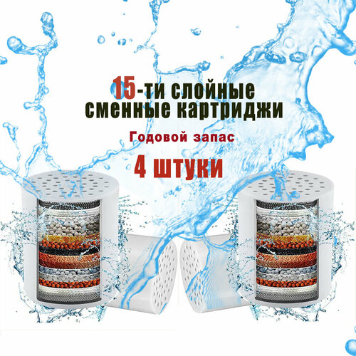 Сменные картриджи ALELKO, для душа, жесткой воды, 15 степеней очистки, 4 шт