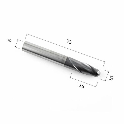 Фреза DJTOL AS2QX10 двухзаходная сферическая с покрытием AlTiN по стали, цветным металлам алюминий, латунь, медь, бронза
