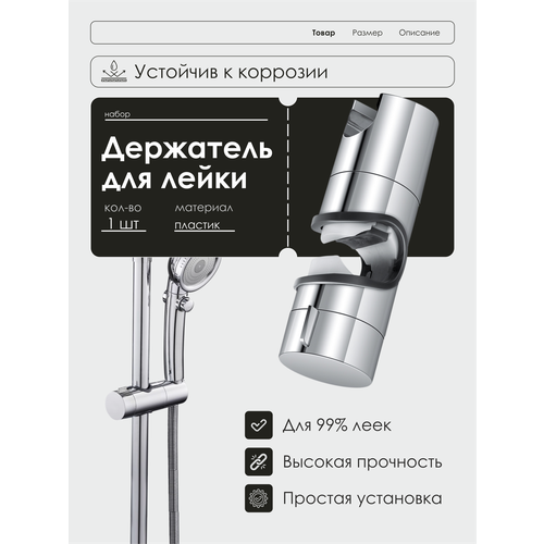 Держатель душевой лейки на штангу, поворотный шарнир с регулировкой, серебристый