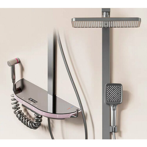 Душевая система и душевая стойка с тропическим душем с подсветкой и индикатором температуры смеситель для ванны 120см