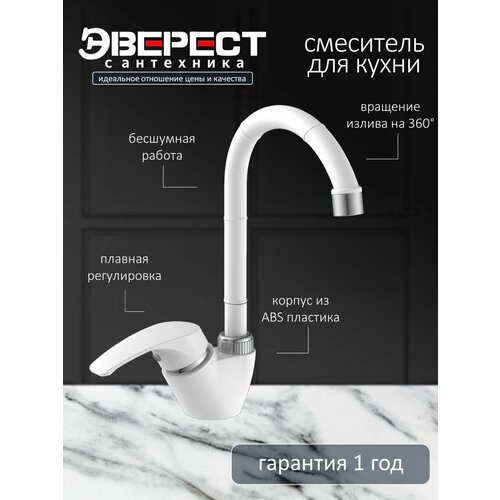Смеситель для кухни B57-033 с высоким изливом, гибкая подводка 35 см, картридж 35 мм, крепеж на шпильке