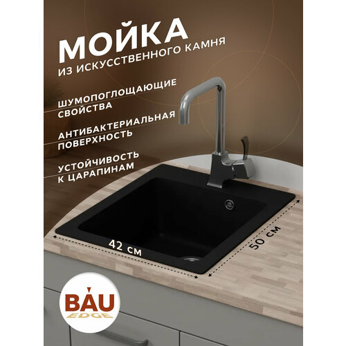 Мойка для кухни BAU Stil Black coal 42х50, выпуск с сифоном в комплекте, черный уголь