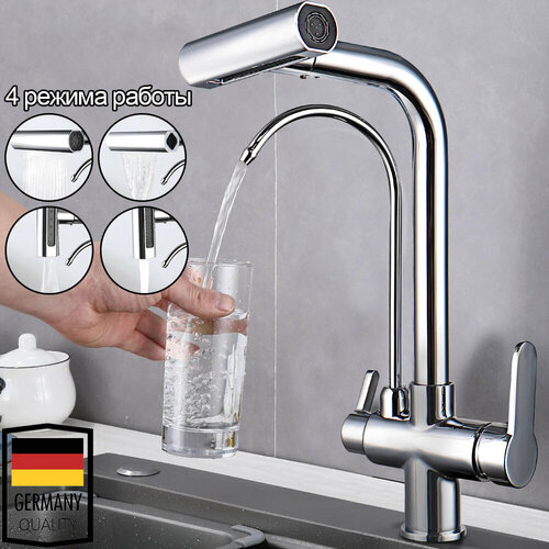 Смеситель на кухню, смеситель для кухни с гибким изливом, 2 в 1,360mm, серебро