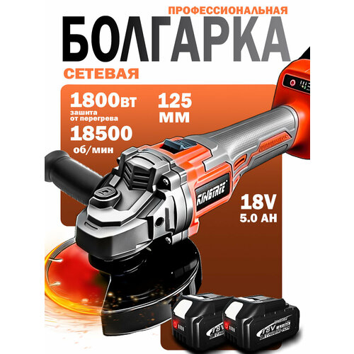 Болгарка KINGTREE, 125 мм, бесщеточный двигатель, 1 аккумулятора, Li-Ion, 5 Ач
