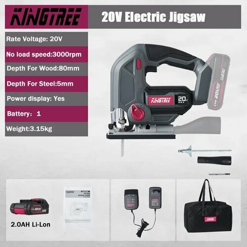 Болгарка KINGTREE, 125 мм, бесщеточный двигатель, 1 аккумулятора, Li-Ion, 6 Ач