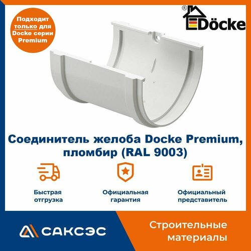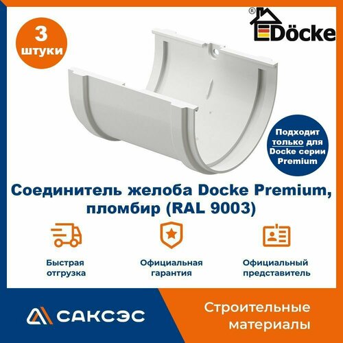 Соединитель желоба Docke Premium, пломбир (RAL 9003) / Соединитель водостока Деке Премиум (3 шт в комплекте)