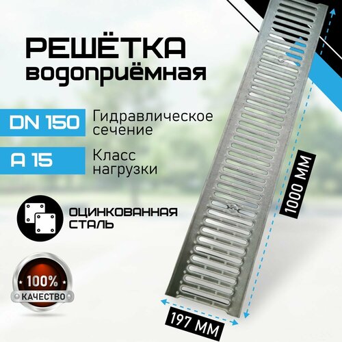 Решетка стальная оцинкованная для водоотводного лотка DN150 А15 (1 шт)