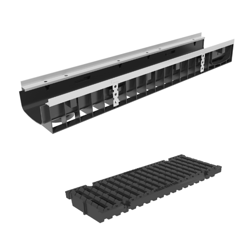 Комплект лоток водоотводный пластиковый DN90 H100 с пластиковой решеткой