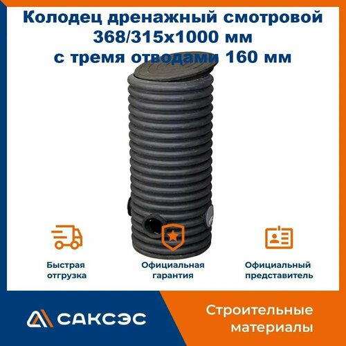 Колодец дренажный смотровой 368/315х1000 мм с тремя отводами 160 мм с дном и крышкой