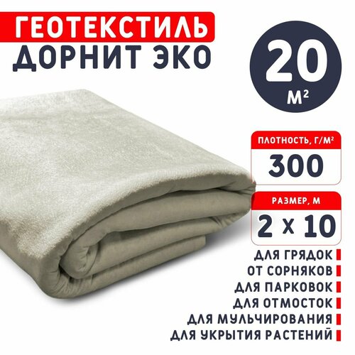 Геотекстиль дорнит 300 ЭКО 2х10 м. для дорожек, садовый, дренажа, парковок, фундаментов