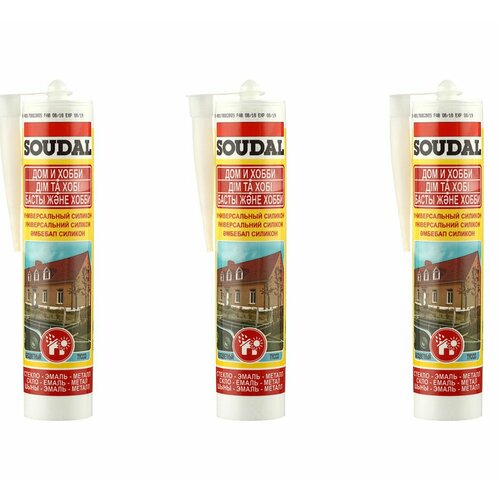 Герметик силиконовый универсальный Soudal прозрачный 280 мл (3 шт.)