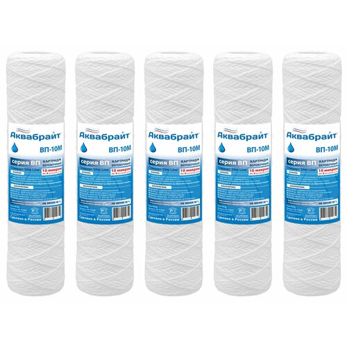 Картридж из полипропиленового шнура аквабрайт ВП-10 М, 10 микрон, SLIMLINE 10-5 шт.
