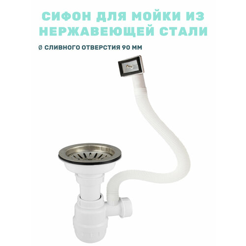 Сифон санакс для мойки из нержавеющей стали, большая горловина с переливом
