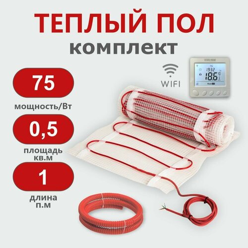 Нагревательный мат, СТН, КМ Light - 75-0,5 150 Вт/м2 с программируемым терморегулятором с Wi-Fi, 0,5 м2, 100х50 см