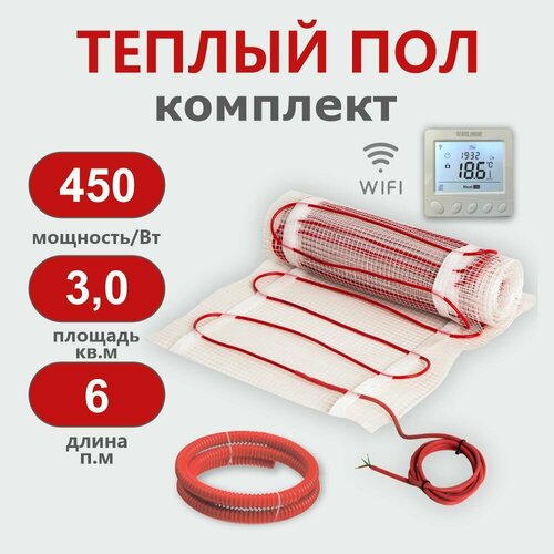 Нагревательный мат, СТН, КМ Light - 450-3,0 150 Вт/м2 с программируемым терморегулятором с Wi-Fi, 3,0 м2, 600х50 см