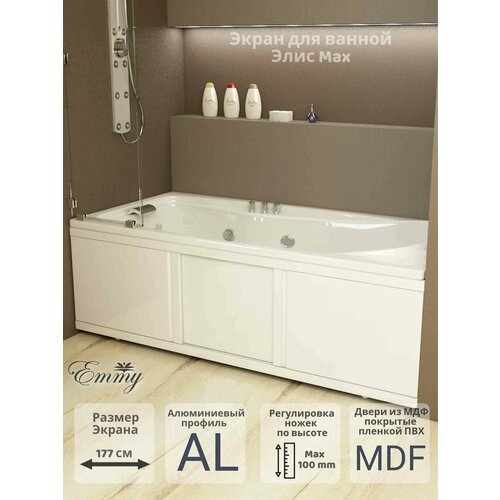 Экран для ванны Emmy "Элис 180 MAX", с раздвижными дверцами МДФ, каркас алюминиевый профиль