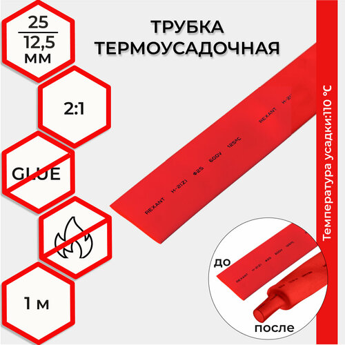 Термоусадка Rexant 25/12,5 мм, 1 м, красная