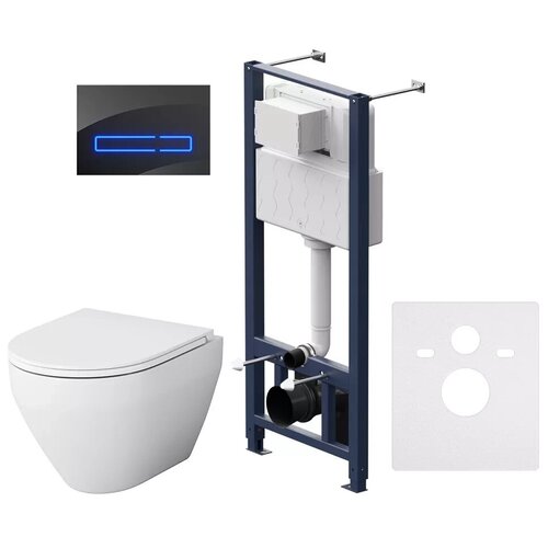 Унитаз с инсталляцией WELTWASSER и кнопкой смыва (MARBERG 410 + ROTBACH 004 GL-WT + MAR 410 RD MT-BL)