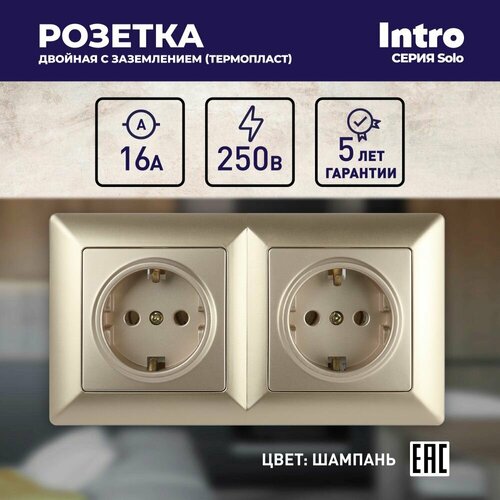 Розетка Intro Plano 1-205-01 с заземлением двойная 2X2P+E Schuko, 16А-250В, IP20, СУ, 1шт