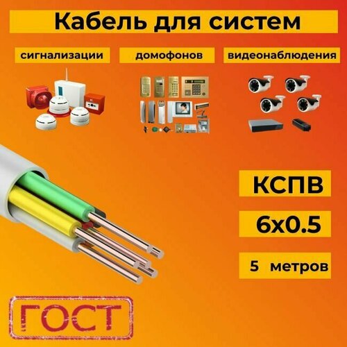 Кабель для систем сигнализации/видеонаблюдения, домофонов ГОСТ КСПВ 6х0.5 мм (0,20 мм2) - 5 м.