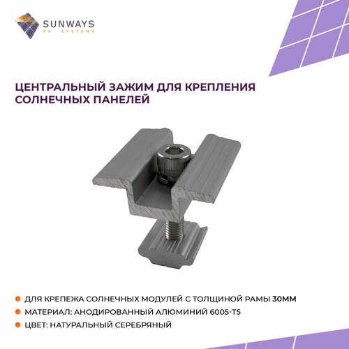 Центральный зажим для крепления солнечных панелей 30мм, Sunways, 1 шт.