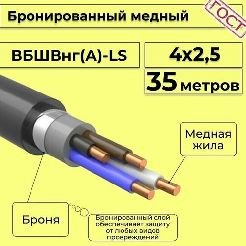 Провод электрический - кабель медный бронированный ГОСТ вбшв, вббшв, вббшвнг(А)-LS 4х2,5 - 35 м.