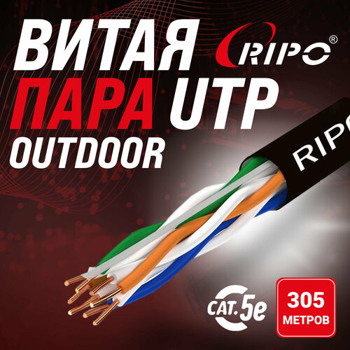 Кабель витая пара для локальной сети LAN UTP4 CAT5E 24AWG CCA PE RIPO outdoor уличный 305 метров 001-112003