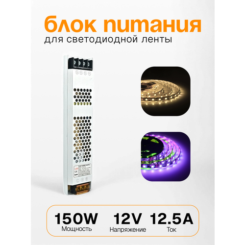 Блок питания для светодиодной ленты 12В, 150 Вт 235mm*53mm*22mm