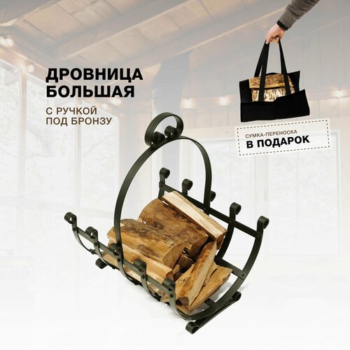Дровница для камина и печи Большая с ручкой, патина бронза