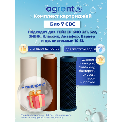 Комплект картриджей для фильтров Гейзер. Agrent Био 7 СВС (СПЕЦИАЛЬНАЯ УПАКОВКА, СВС) + подарок