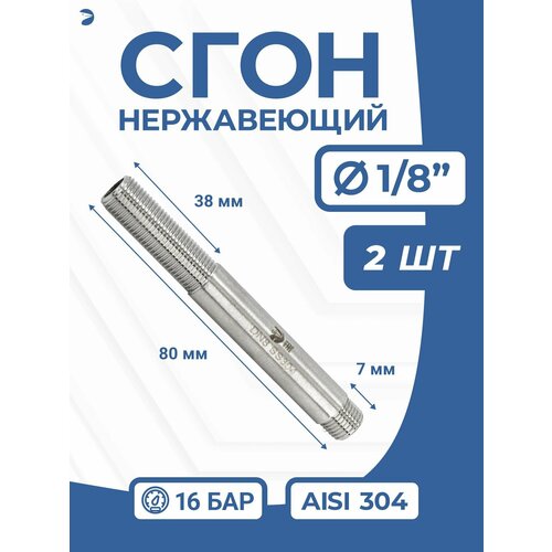 Сгон стальной (двойной ниппель) нержавейка Ду 6 (1/8 дюйма), AISI 304 PN16, набор 2 шт