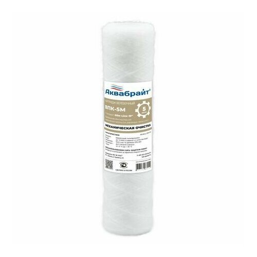 Картридж из полипропиленовой веревки аквабрайт ВПК-5М, 5 микрон, SLIMLINE 10