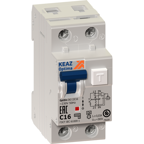 KEAZ АВДТ с защитой от сверхтоков OptiDin VD63-22C40-A-УХЛ4 (2P, C40, 30mA)