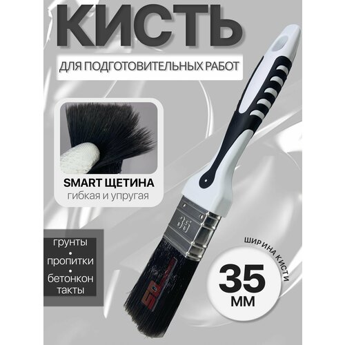Кисть DECOR Black White универсальная 35х15мм, светлая смешанная щетина, 2К ручка 880-035