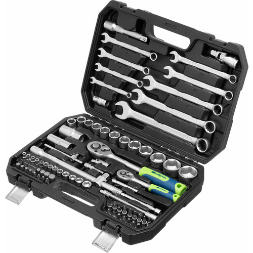Набор инструментов СИБРТЕХ 1/2", 1/4", пластиковый кейс, 82 предмета