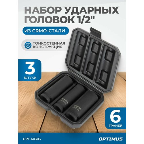 Набор ударных головок тонкостенных 1/2" 3 пр, 17,19,21 мм. OPT-40303